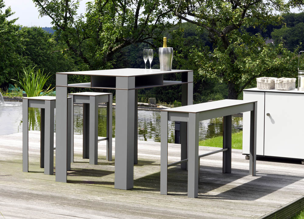 CITYGARTEN bietet Ihnen passend zum Bartisch "Friendly 6" zusätzlich zum Hocker "Friendly 1" die Barbänke "Friendly 2" (100 cm Länge) und "Friendly 3" (140 cm) an. "Friendly 1" und "Friendly 2" lassen sich dabei platzsparend und geschützt unter dem Bartisch "Friendly 6" verstauen.