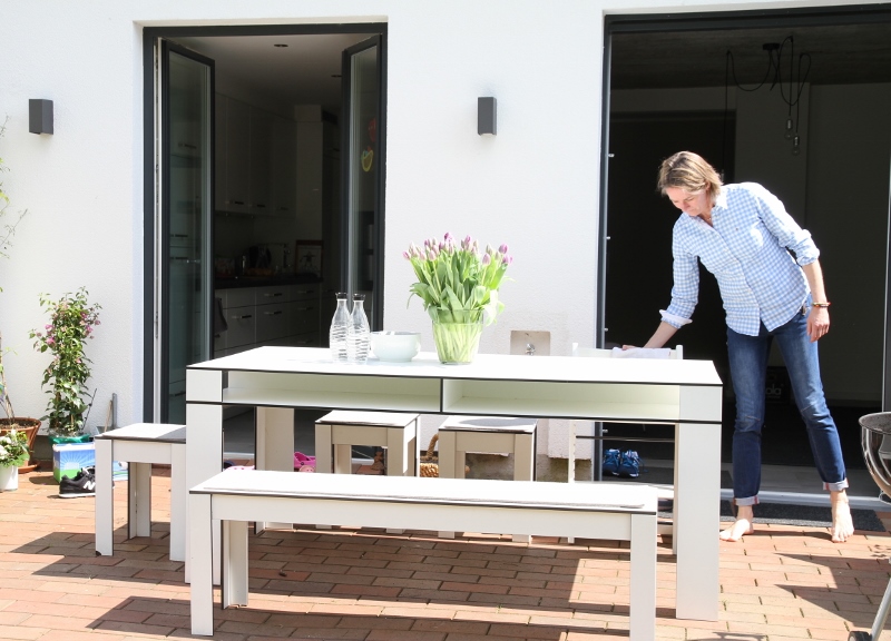 For the Design Outdoor Table "Family & Friends 8", CITYGARTEN offers the garden bench "Family & Friends 3" (180 cm length for up to 3 persons) and "Family & Friends 2" (140 cm for 2 persons). The benches "Family & Friends 2" can be stowed under the table. All benches are also in offer as a pair. The stylish garden stools "Family & Friends 1" can be placed at the front sides of the outdoor table.