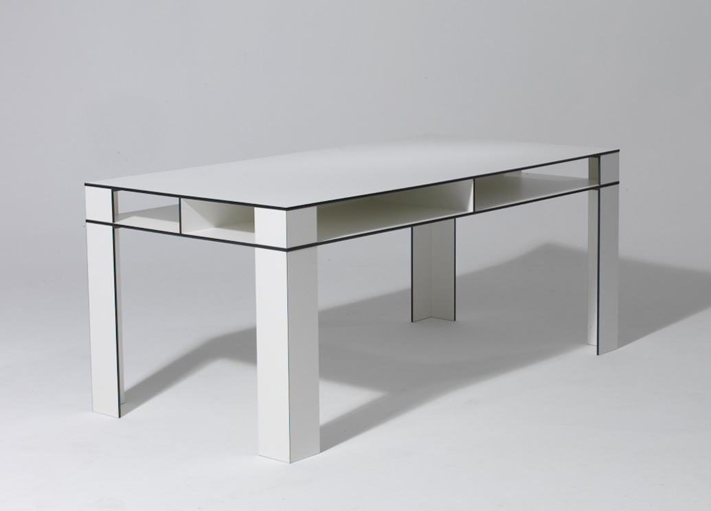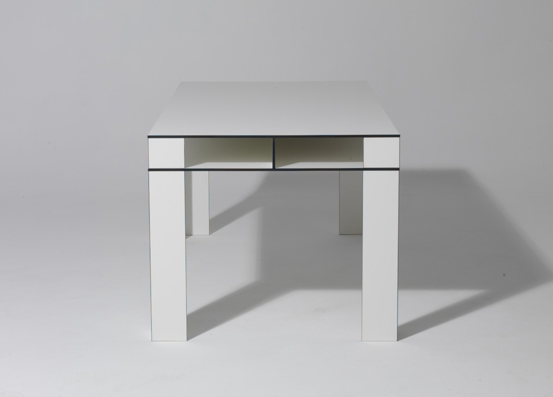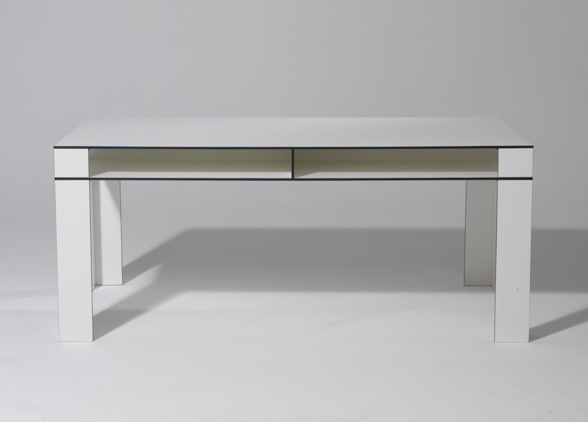 Das Design des Esstisches wird von seine klaren, extrem dünnen Linien und der nur 1,3 cm schmalen Kante geprägt.