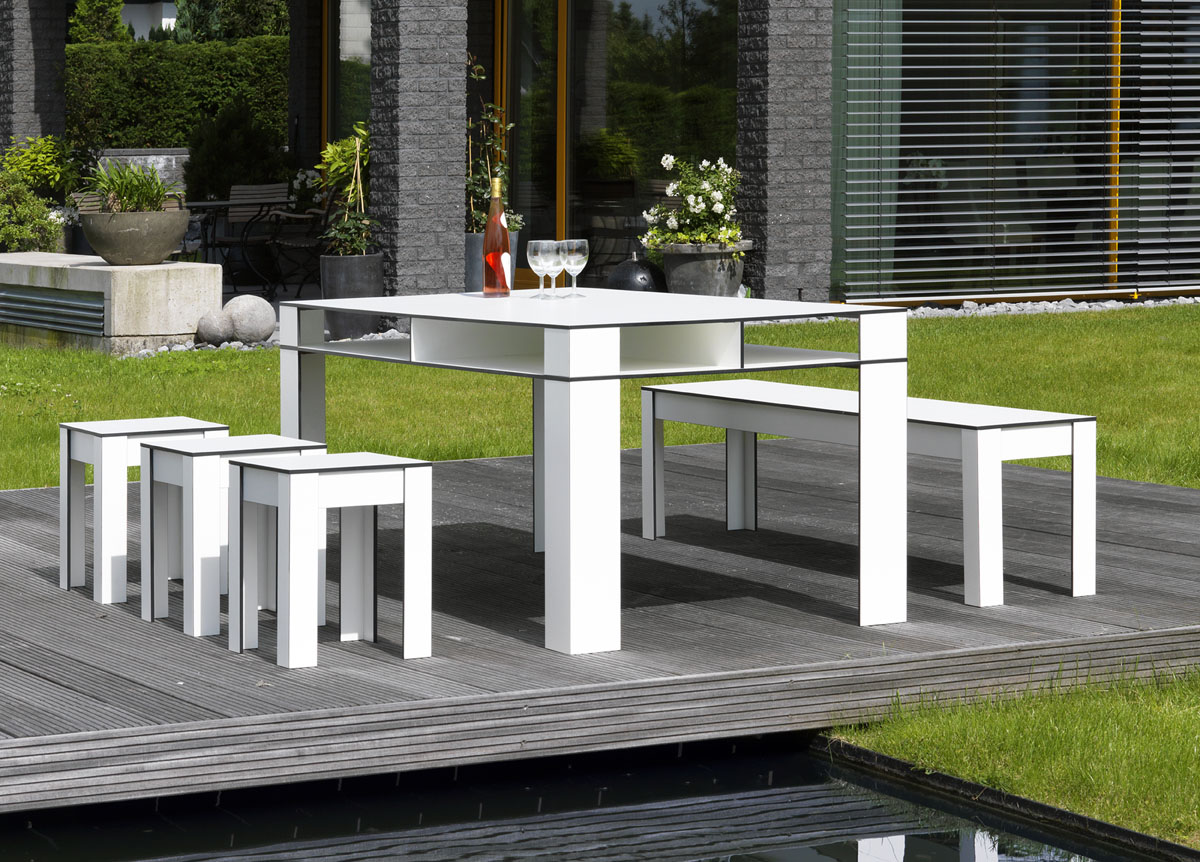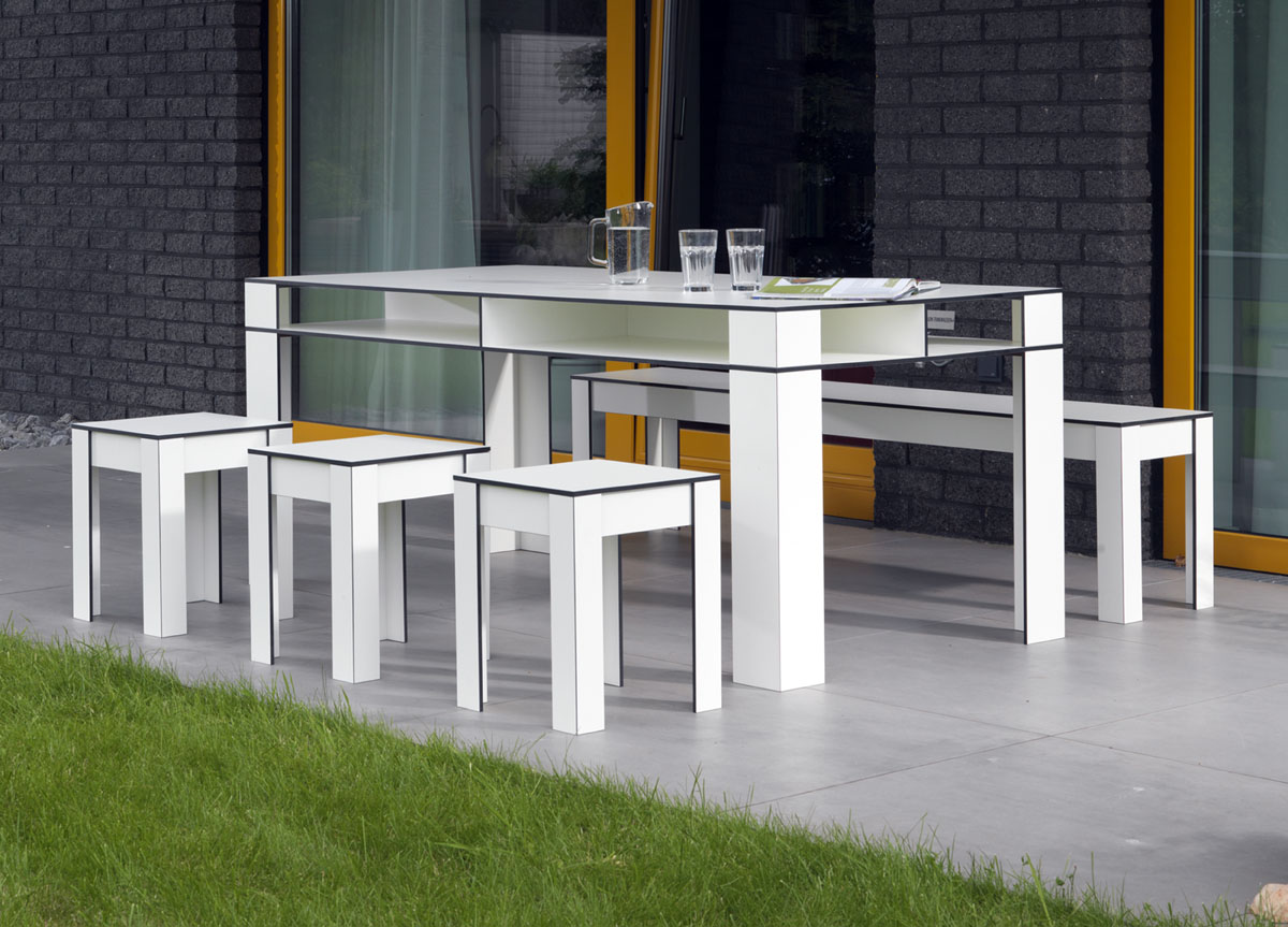 Die Outdoor-Hocker werden aus dem hochwertigen Material "High Pressure Laminate" (HPL) hergestellt und sind damit leicht zu reinigen und sehr wetterbeständig.