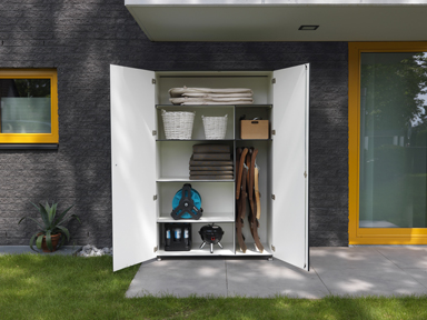 Mit unseren intelligenten Verstaulösungen verhindern wir wo möglich Laufwege von draußen nach drinnen und in die andere Richtung. Lounge-Auflagen, Deckchairs und Windlichter für das „Draußen-Dinner“ können in unseren Organizer-Möbeln ebenso regensicher verstaut werden wie Gartenutensilien. Unsere einzigartigen Outdoor-Sideboards sind elegante Anrichten bei der Bewirtung von Gästen, aus denen Speisen und Getränke schnell herbei gezaubert werden können. Und unter unseren Outdoor-Tischen und Esstischen haben Sie mit einem Handgriff Zeitschriften, Handys und auch mal einen Teller abgelegt, wenn Sie den Tisch schnell aufgeräumt haben möchten. Unser Organizer-Prinzip bedeutet für alle unsere Produkte: „Wenn alles seinen Platz hat, sind Terrasse und Balkon schnell aufgeräumt!“